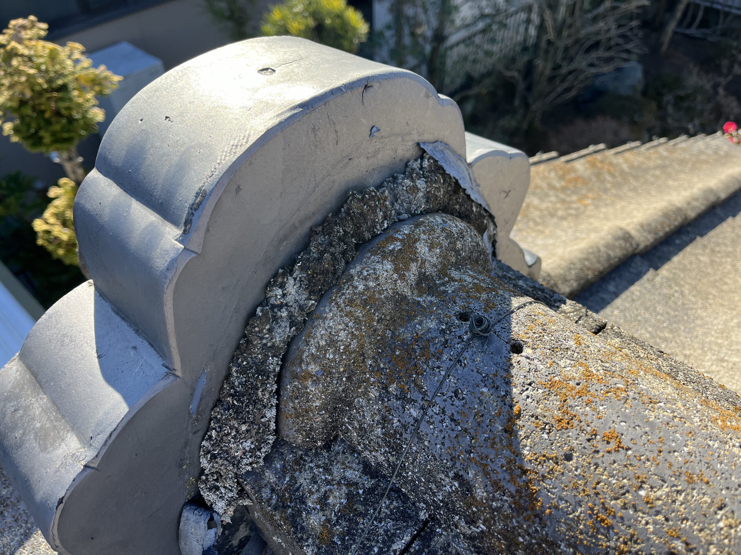 鬼瓦は漆喰で固定されていますが、この漆喰が劣化してしまうと