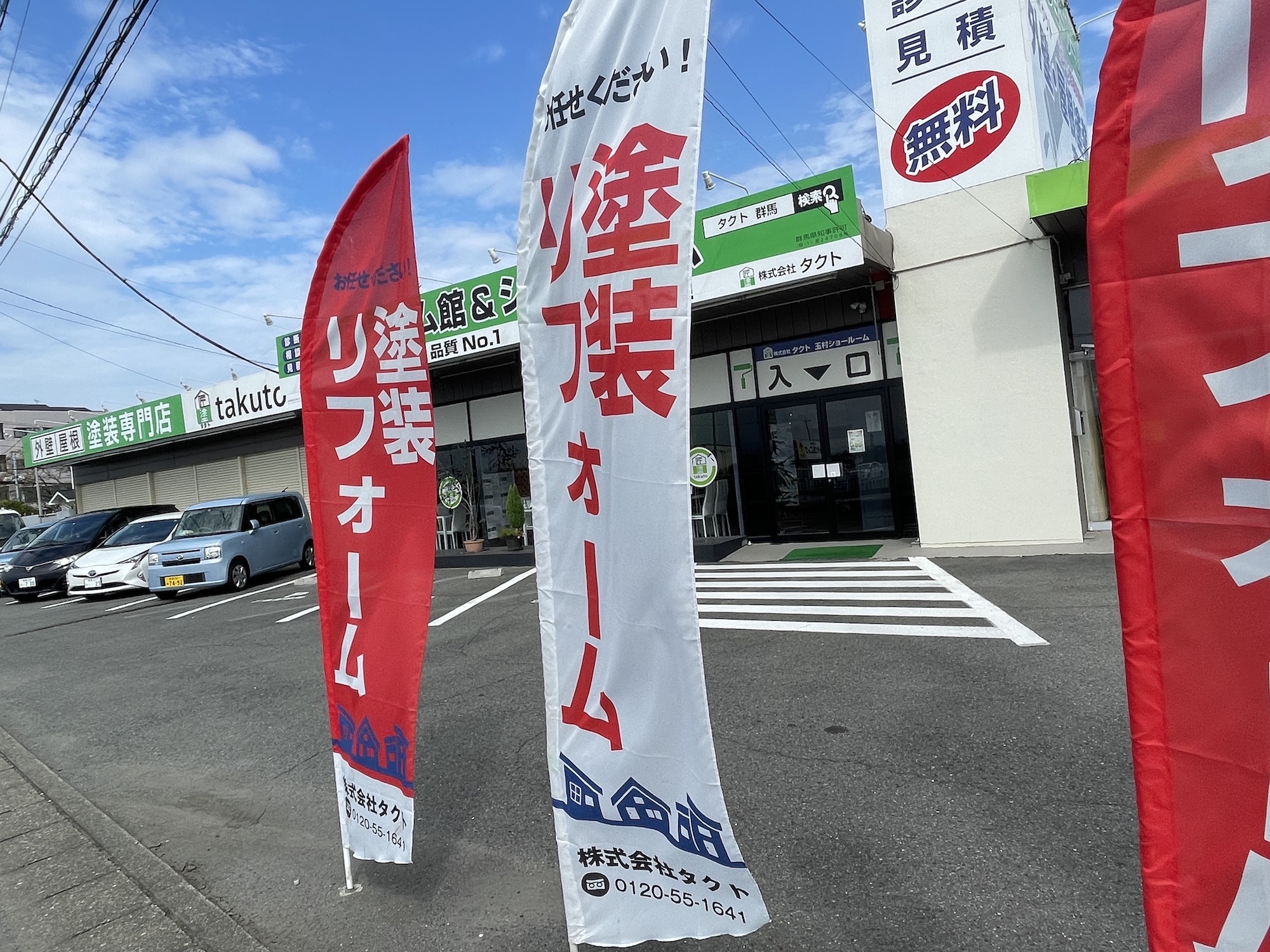 【玉村町】のぼりを新しくしました! 2023.09.27 事務所の様子 玉村町の皆様、こんにちは! 屋根・外壁塗装工事専門店の 株式会社タクトです! いつもブログをご覧いただき、 ありがとうございます✨ 段々と涼しくなり 過ごしやすい季節になりましたね☀️ タクトののぼりが 新しく変わりました✨ いかがでしょうか。 目立ちやすいように 赤と白の色を使って作成しました⭐️ タクトのイメージカラーは緑色ですが 赤もアクセントになって素敵ですね😊 10月はイベントを開催する予定ですので 皆様お楽しみにしていてください✌️✨ 塗装やお家のことならタクトにお任せください✊ 皆様からのご連絡お待ちしております。
