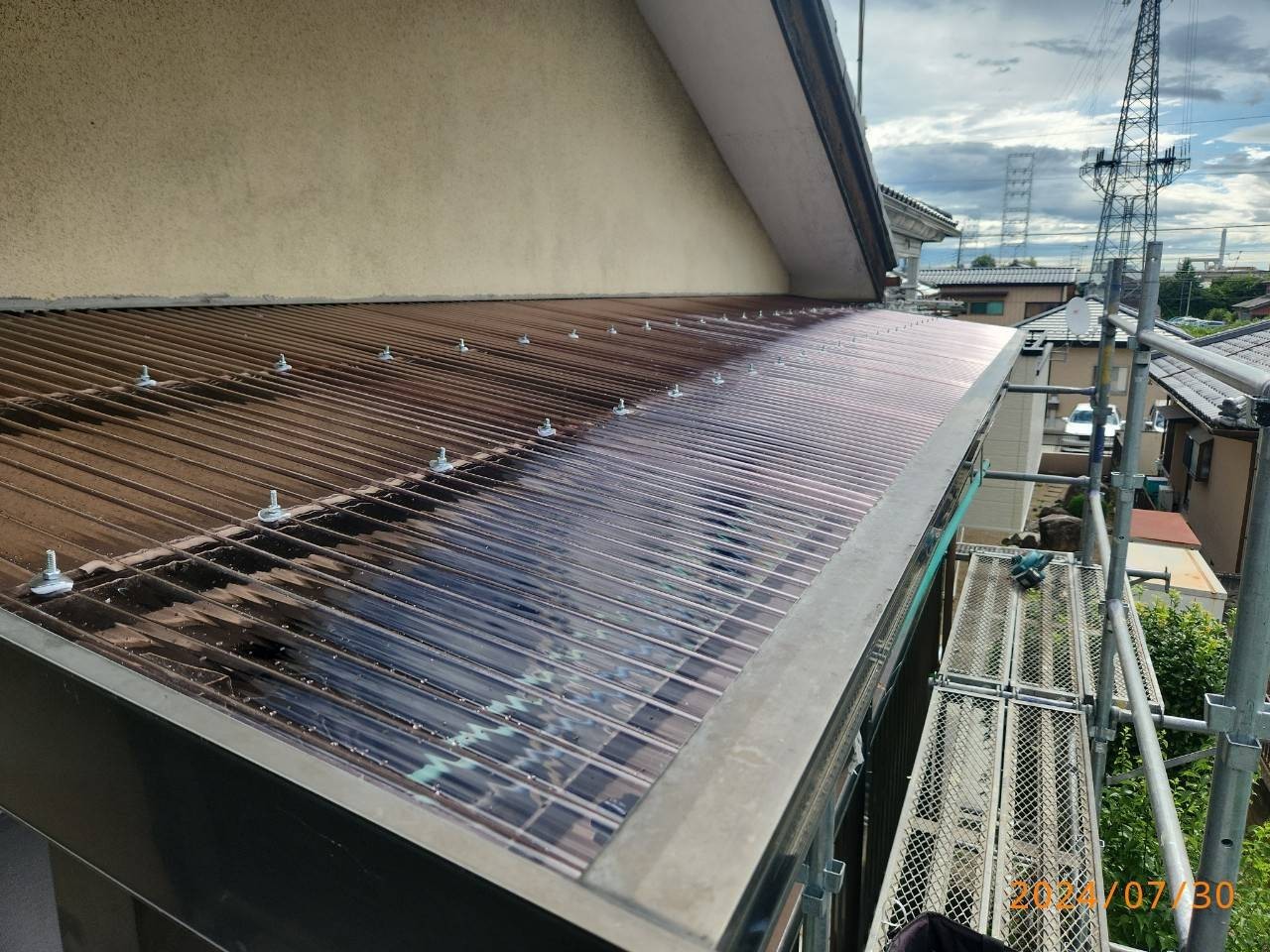 【伊勢崎市】波板張り替え工事の様子をご紹介! 2024.08.06 現場の様子 伊勢崎市の皆様、こんにちは! 屋根・外壁塗装工事専門店の 株式会社タクトです! いつもブログをご覧いただき、 ありがとうございます✨ 暑い日が続いていますね 今回ご紹介するのは 波板張り替え工事の様子です🔨 それでは早速 工事の様子をご覧ください! いかがでしょうか。 とても綺麗に仕上がりました✨ タクトでは塗装以外の工事も 喜んで承っています✌️ お家のことなら何でもお気軽にお問い合わせください😊 塗装やお家のことならタクトにお任せください✊ 皆様からのご連絡お待ちしております。