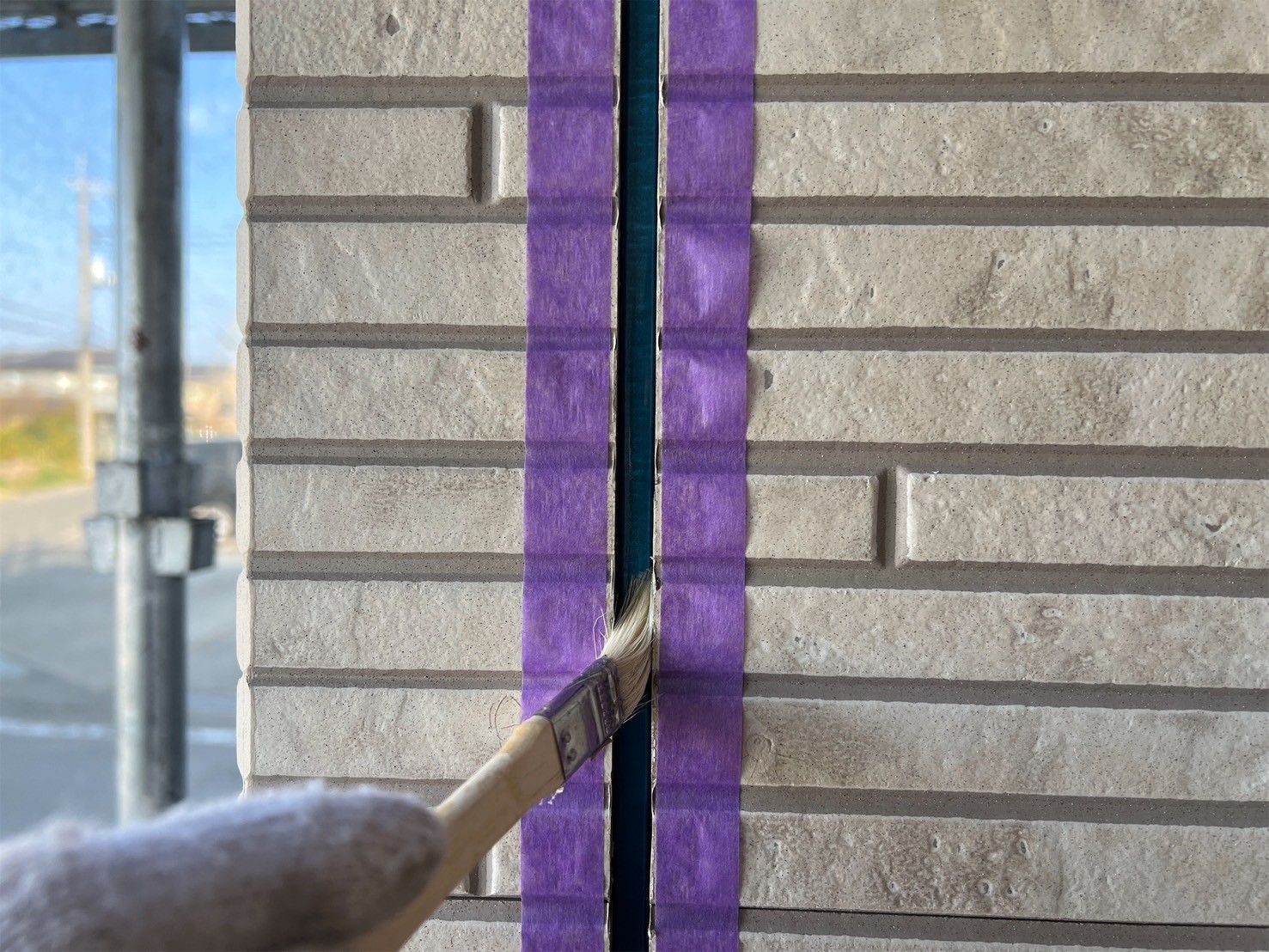 コーキングの撤去打ち替えを行なっている写真になります!
