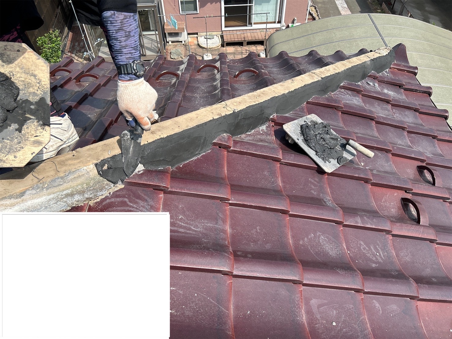 棟瓦がしっかりと固定されることで、
