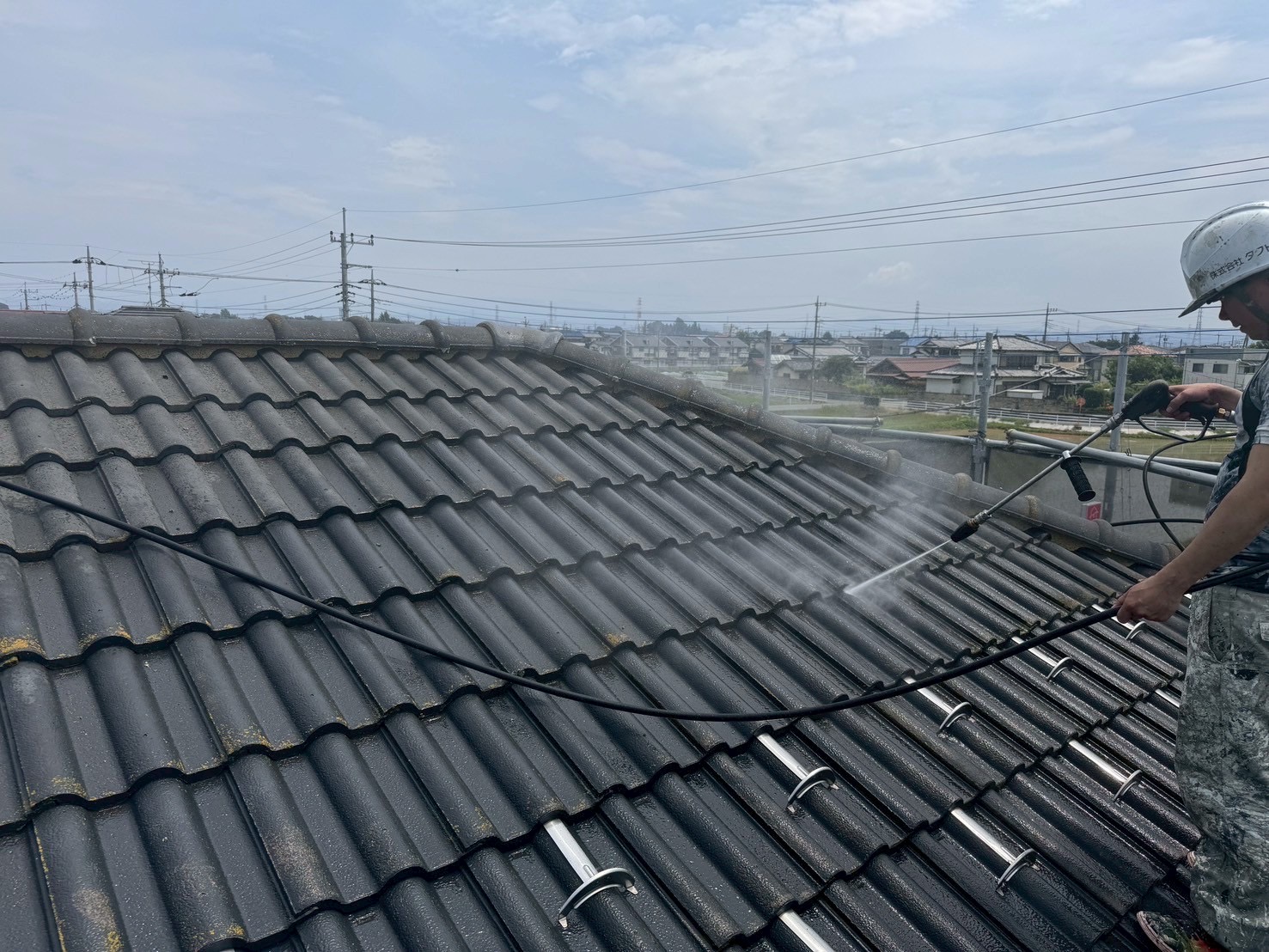 【伊勢崎市】高圧洗浄の様子をご紹介! 2025.07.06 現場の様子 伊勢崎市の皆様こんにちは! 外壁・屋根塗装工事専門店の 株式会社タクトです! いつもブログをご覧いただき、 ありがとうございます! 暑い日が続いていますが、 熱中症にならないように 気をつけてくださいね☀️ さて、今回は高圧洗浄の様子をご紹介いたします👷 早速写真をご覧ください! いかがでしょうか。 高圧洗浄で外壁や屋根についた汚れや 古い塗膜を落としていきます。 高圧洗浄を行わずに塗装をすると、 塗料が付着しなかったり、色ムラができたりする 可能性があります⚠️ 高圧洗浄はとても大切な工程です! 塗装やお家のことならタクトにお任せください✊ 皆様からのご連絡をお待ちしております。